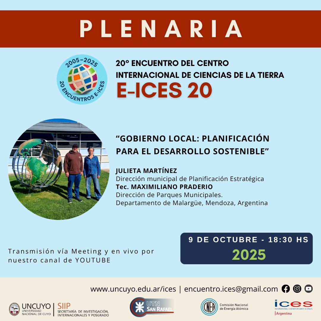 El Centro Internacional de Ciencias de la Tierra (E-ICES 20) realiza hoy su 20° Encuentro, a partir de las 18:30 hs, con un tema clave para el desarrollo local y global: «Gobierno Local: Planificación para el Desarrollo Sostenible».