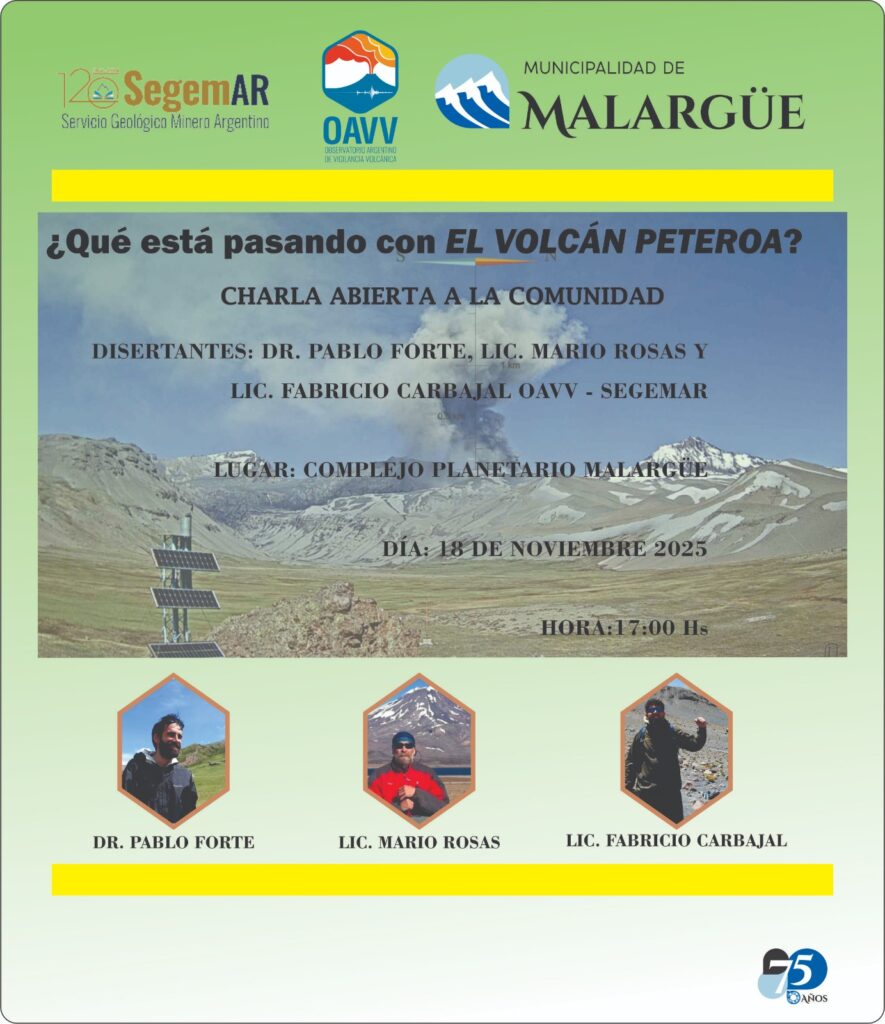 La Municipalidad, SEGEMAR y el Observatorio Argentino de Vigilancia Volcánica invitan a charlas abiertas sobre el Peteroa