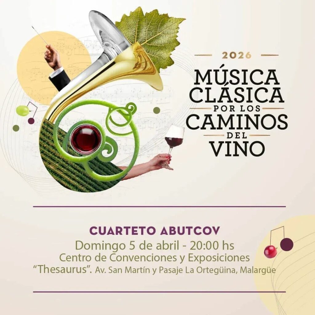 La ciudad de Malargüe será protagonista de una jornada única en el marco de Música Clásica por los Caminos del Vino, que se desarrollará en toda la provincia del 30 de marzo al 5 de abril de 2026. En el departamento sureño, la actividad se concentrará el sábado 5 de abril a las 20 horas, con un concierto que tendrá lugar en el Centro de Convenciones y Exposiciones Thesaurus, uno de los espacios culturales más importantes de la región. La presentación estará a cargo del Cuarteto Abutcov, que ofrecerá un repertorio que recorrerá distintos períodos de la música clásica. El programa incluirá obras del período barroco como el “Air” de Johann Sebastian Bach y piezas de la suite “Royal Fireworks” de George Frideric Handel. También se interpretarán composiciones del período clásico, entre ellas “Eine kleine Nachtmusik” de Wolfgang Amadeus Mozart, y del romanticismo, con el “Cuarteto en sol menor” de Franz Schubert. A esto se sumará una adaptación para dúo de violines y piano en re menor del propio Abutcov, incorporando una mirada contemporánea al programa. Organizado por la Subsecretaría de Cultura de Mendoza, el festival continúa consolidándose como uno de los eventos culturales más importantes del calendario provincial, llevando la música clásica a escenarios no tradicionales y promoviendo el acceso a propuestas artísticas de calidad. De esta manera, Malargüe se suma con una única pero significativa jornada, invitando a vecinos y visitantes a disfrutar de una velada donde la música y la cultura serán protagonistas.