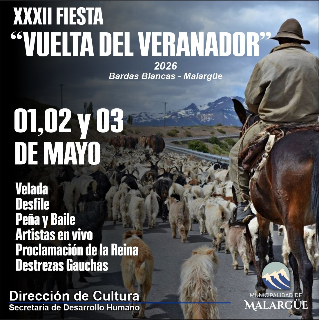 La localidad de Bardas Blancas, en Malargüe, se prepara para una nueva edición de la Fiesta “Vuelta del Veranador”, que en 2026 celebrará su XXXII edición del 1 al 3 de mayo.