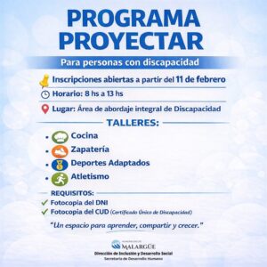 “Programa Proyectar” abre sus puertas con nuevas propuestas inclusivas para personas con discapacidad Leer nota completa 18 febrero, 2026
