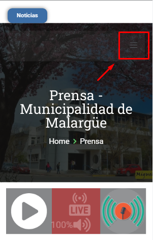 • Ingresa a www.malargue.gov.ar y selecciona la opción “Bono de sueldo”, que se encuentra en la parte superior de la pantalla -si lo estás visualizando desde una computadora- y si lo estás haciendo desde un móvil podrás seleccionarla desplegando el icono: .