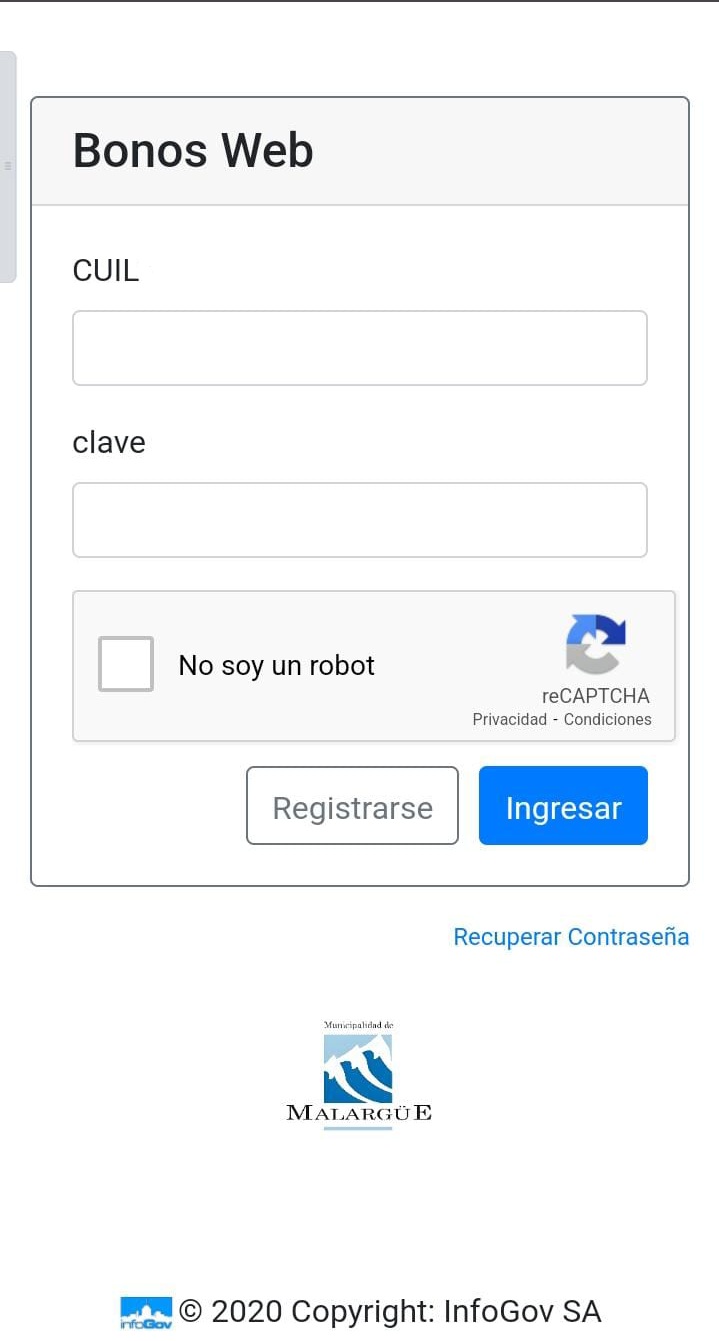 Para poder proceder a la descarga, es necesario que el agente municipal cuente con acceso a “Bonos Web”, para la cual necesitará tener un CUIL y una clave que se gestiona a través de la Dirección de Informática, de lunes a viernes de 8:00 a 12:30 horas. Simplemente necesitas proporcionarles a los técnicos de sistemas el CUIL y un correo electrónico (gmail, yahoo u oficial municipal) y ya puedes gestionar el trámite.