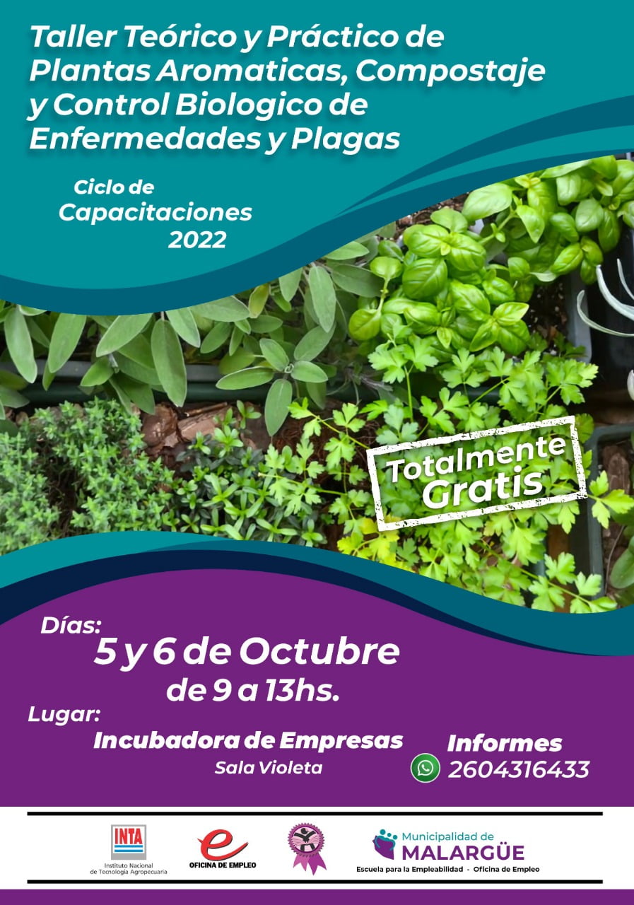 En el marco del ciclo de capacitaciones que lleva adelante el INTA y la Oficina de Empleo de la Municipalidad de Malargüe se desarrollará un curso de Aromáticas, Compostaje y control biológico de Enfermedades.