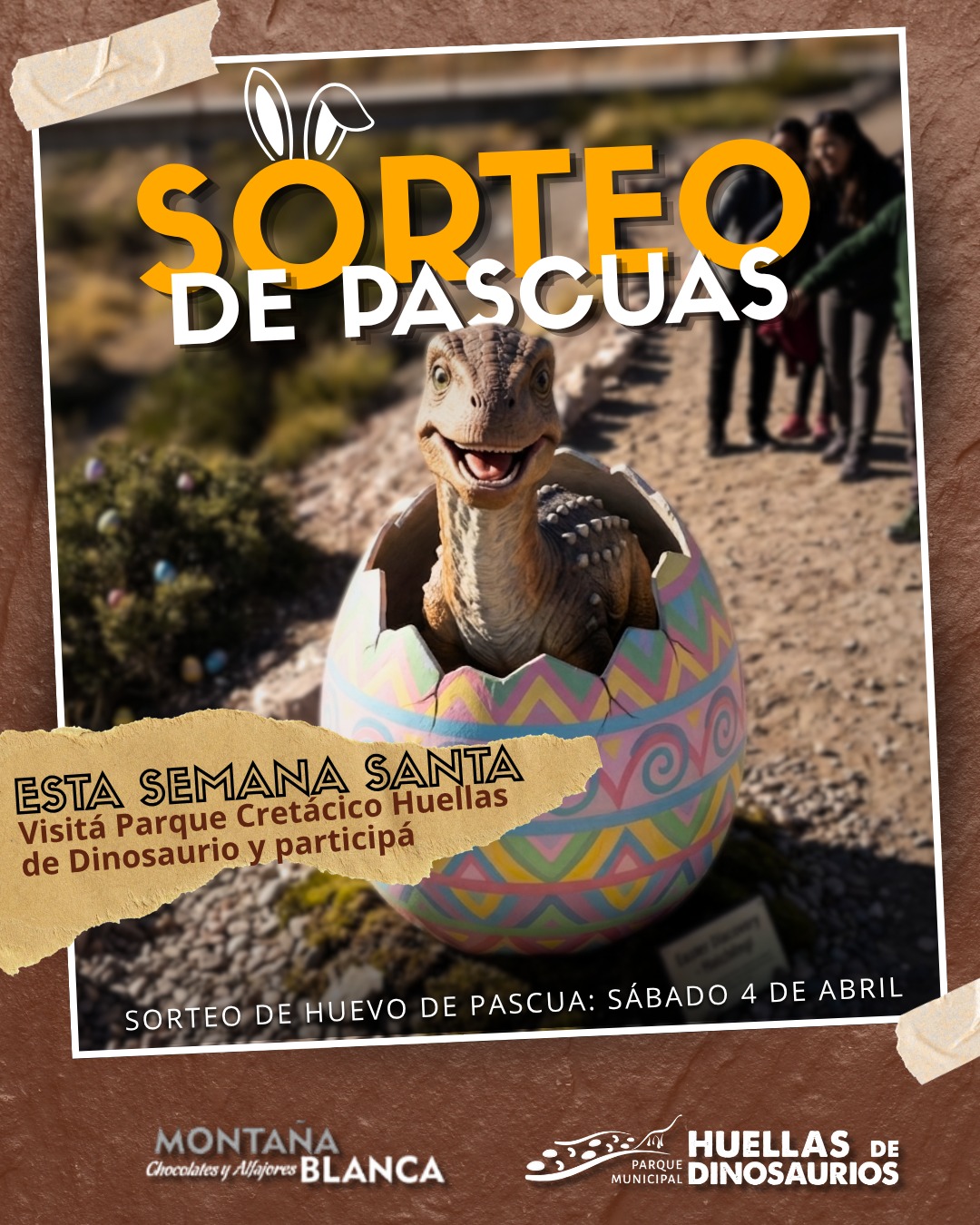 Entre las actividades destacadas se encuentra un sorteo especial de Pascuas, donde los asistentes podrán participar por un huevo temático en un entorno único, rodeado de réplicas y senderos que recrean la era de los dinosaurios. La iniciativa busca sumar una experiencia lúdica a la visita tradicional del parque.