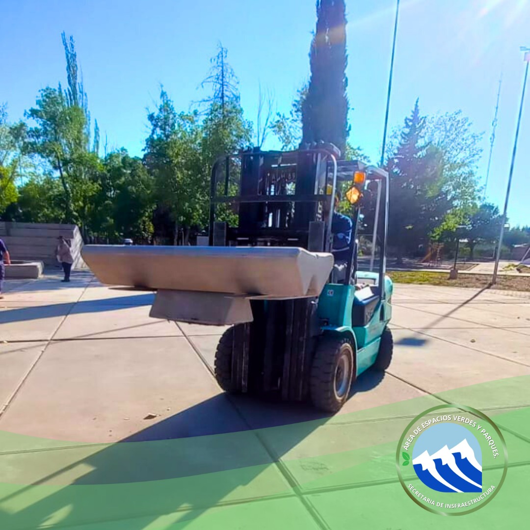 En este mismo espacio, el Área de Espacios Verdes trabaja de manera coordinada con el equipo de Obras Públicas en la instalación de nuevo mobiliario. Agradecemos profundamente el compromiso de los operarios que, con su labor diaria, transforman la plaza en un lugar más cómodo y atractivo para el encuentro familiar.