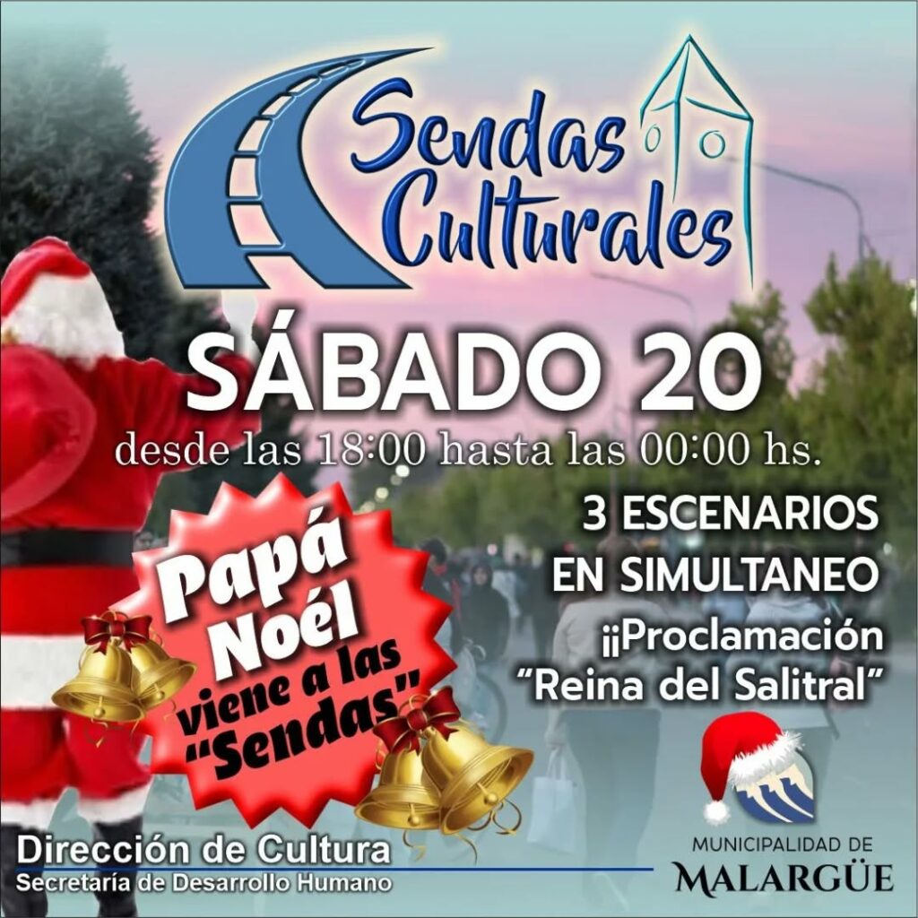 Este sábado 20, la ciudad vivirá una nueva edición de Sendas Culturales, una propuesta pensada para disfrutar en familia y celebrar el encuentro a través del arte, la tradición y la identidad local. La actividad se desarrollará desde las 18:00 hasta las 00:00 horas, con tres escenarios en simultáneo ubicados en Plaza San Martín, CAPRA y el Reloj del Cincuentenario.