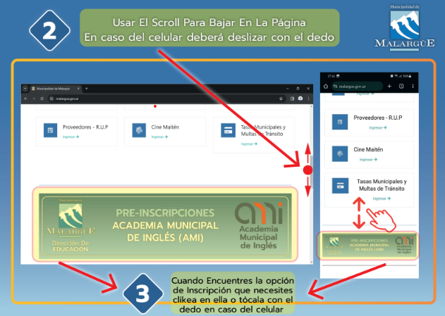 Realizado todo el procedimiento, desde la Academia Municipal de Inglés, le informará al alumno los demás pasos para culminar su matriculación y lograr el ciclo 2024.