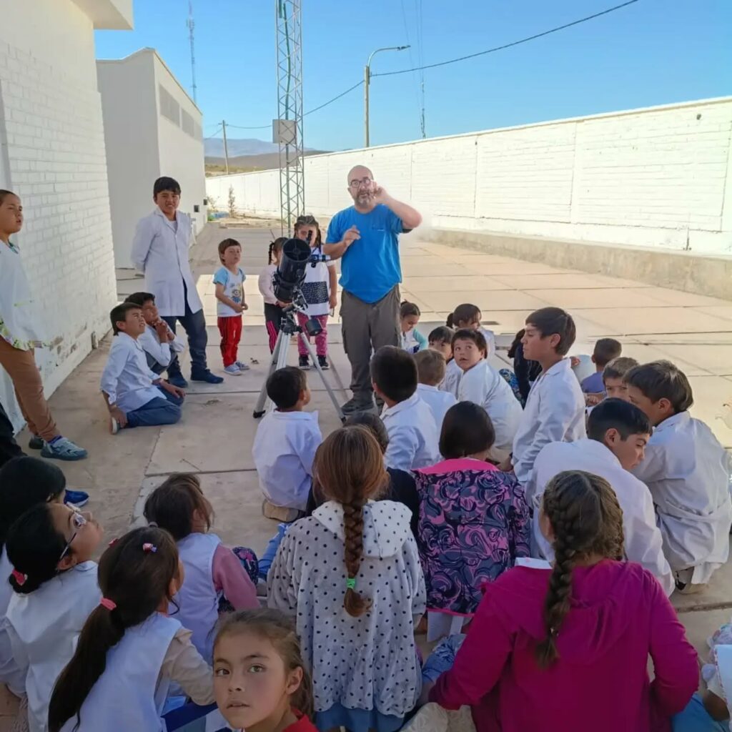 En este marco, el programa llegó a distintos puntos del departamento, incluyendo las escuelas de El Alambrado, El Manzano y Bardas Blancas, además de establecimientos educativos de la ciudad. Allí, estudiantes y docentes participaron de actividades que transforman la manera de aprender: realizaron prácticas de física experimental, detectaron rayos cósmicos mediante instrumental específico y observaron la Luna y el Sol a través de telescopios.
