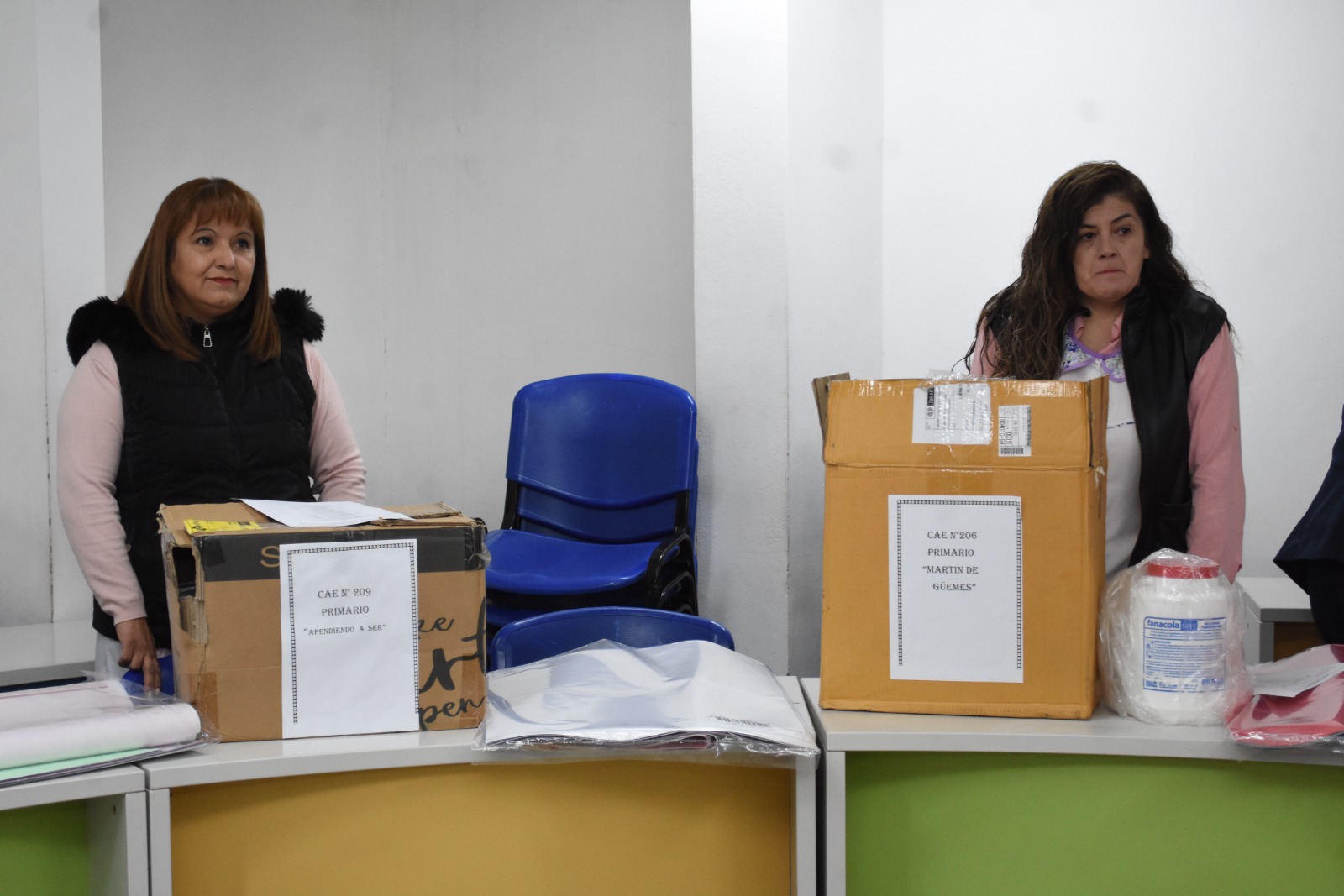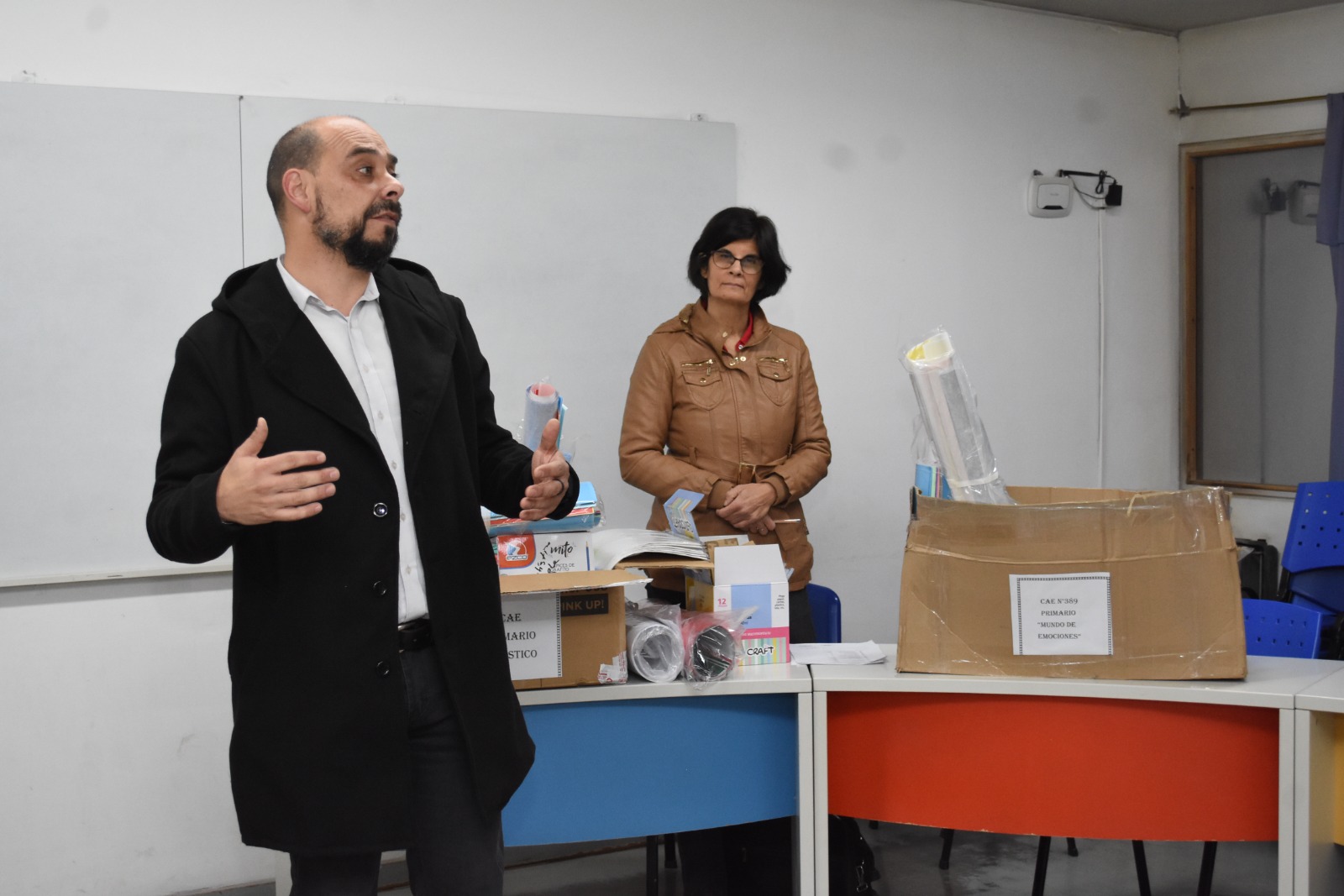 La entrega se llevó a cabo con la participación del Intendente Cdor. Celso Jaque, el Secretario de Desarrollo Humano, Prof. Juan José Narambuena, y el propio Cabaña. Según explicó el director, el encuentro se realizó en horas tempranas de la mañana junto a los directivos de los once CAES, tanto de nivel primario como secundario, donde se distribuyó material de librería y didáctico esencial para el desarrollo de las actividades del segundo semestre del año.