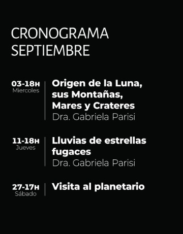 Del 3 de septiembre al 20 de noviembre, estudiantes y público en general podrán participar de charlas, talleres y capacitaciones sobre el origen, formación y evolución de planetas, satélites y cuerpos celestes, organizadas por la Facultad de Ciencias Exactas y Naturales.
