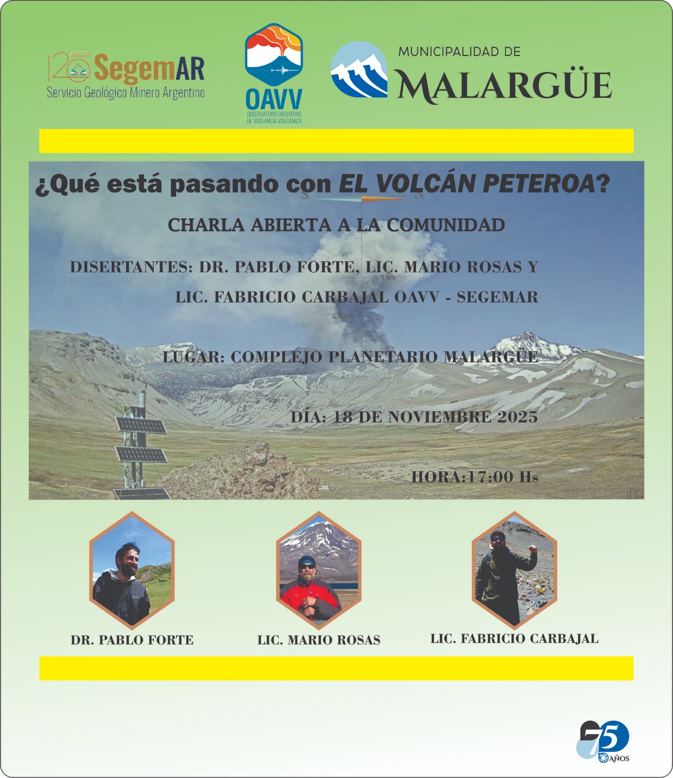 Estos encuentros son organizados en colaboración directa con el Observatorio Argentino de Vigilancia Volcánica (OAVV), una dependencia clave del Servicio Geológico Minero Argentino (SEGEMAR), lo que garantiza la precisión y el rigor técnico de la información que se brindará a los asistentes.