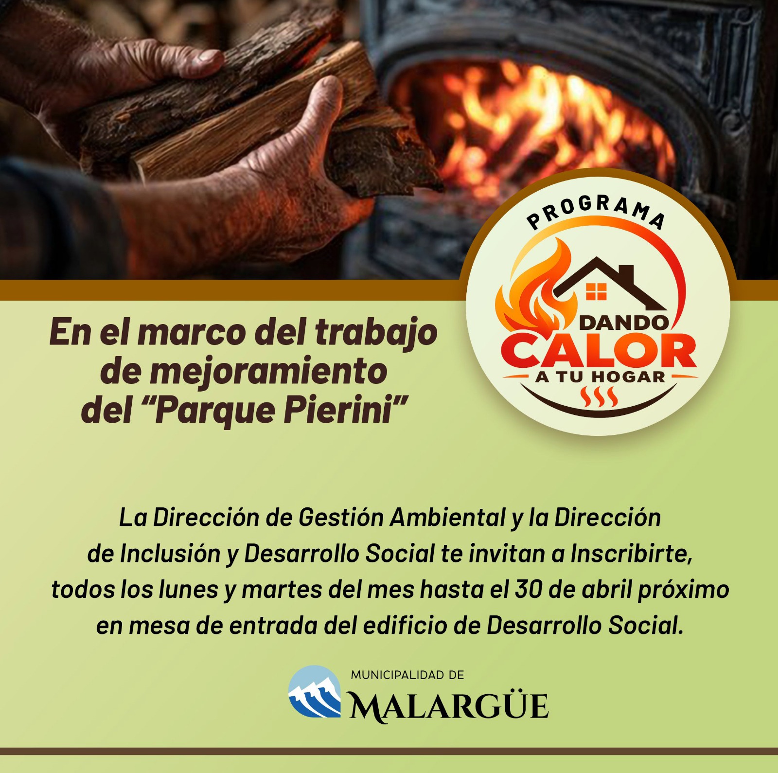 En el marco del programa “Dando Calor a tu Hogar”, la Dirección de Inclusión y Desarrollo Social en conjunto con la Dirección de Gestión Ambiental llevarán adelante la entrega de leña destinada a vecinos y vecinas de la ciudad, con el objetivo de brindar este recurso durante los meses más fríos. Forma de inscribirse y más información en la nota.