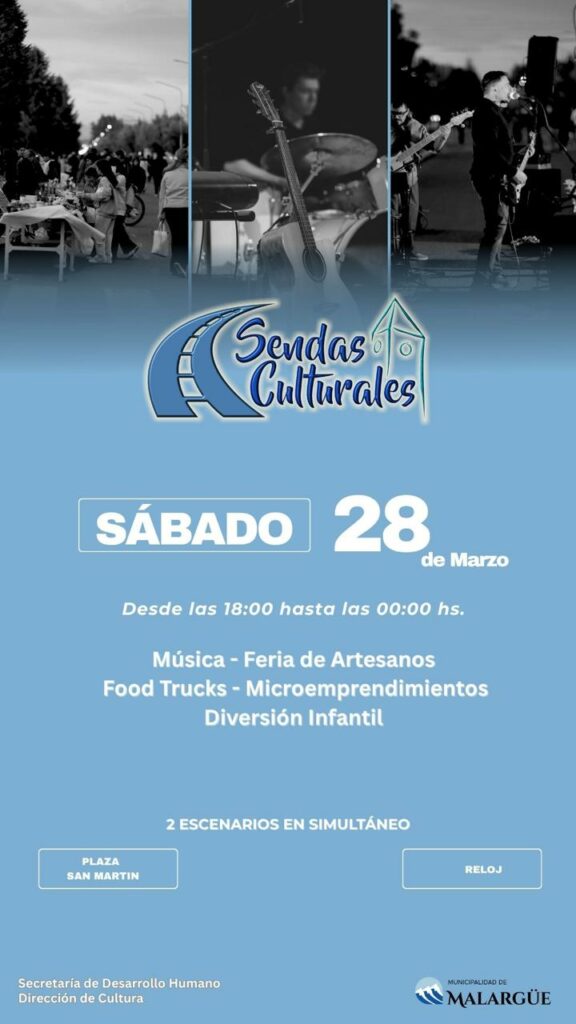 La ciudad de Malargüe se prepara para vivir una jornada llena de arte y entretenimiento con una nueva edición de “Sendas Culturales”, una propuesta impulsada por la Municipalidad local a través de la Secretaría de Desarrollo Humano y la Dirección de Cultura.