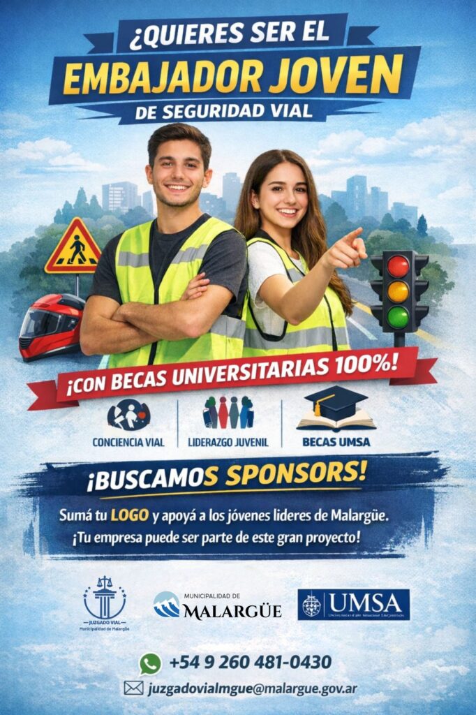 El Juzgado Vial Municipal de Malargüe presentó la convocatoria 2026 del programa “Embajador Joven de la Seguridad Vial”, una iniciativa destinada a formar jóvenes comprometidos con la educación vial y la cultura del cuidado en Malargüe.