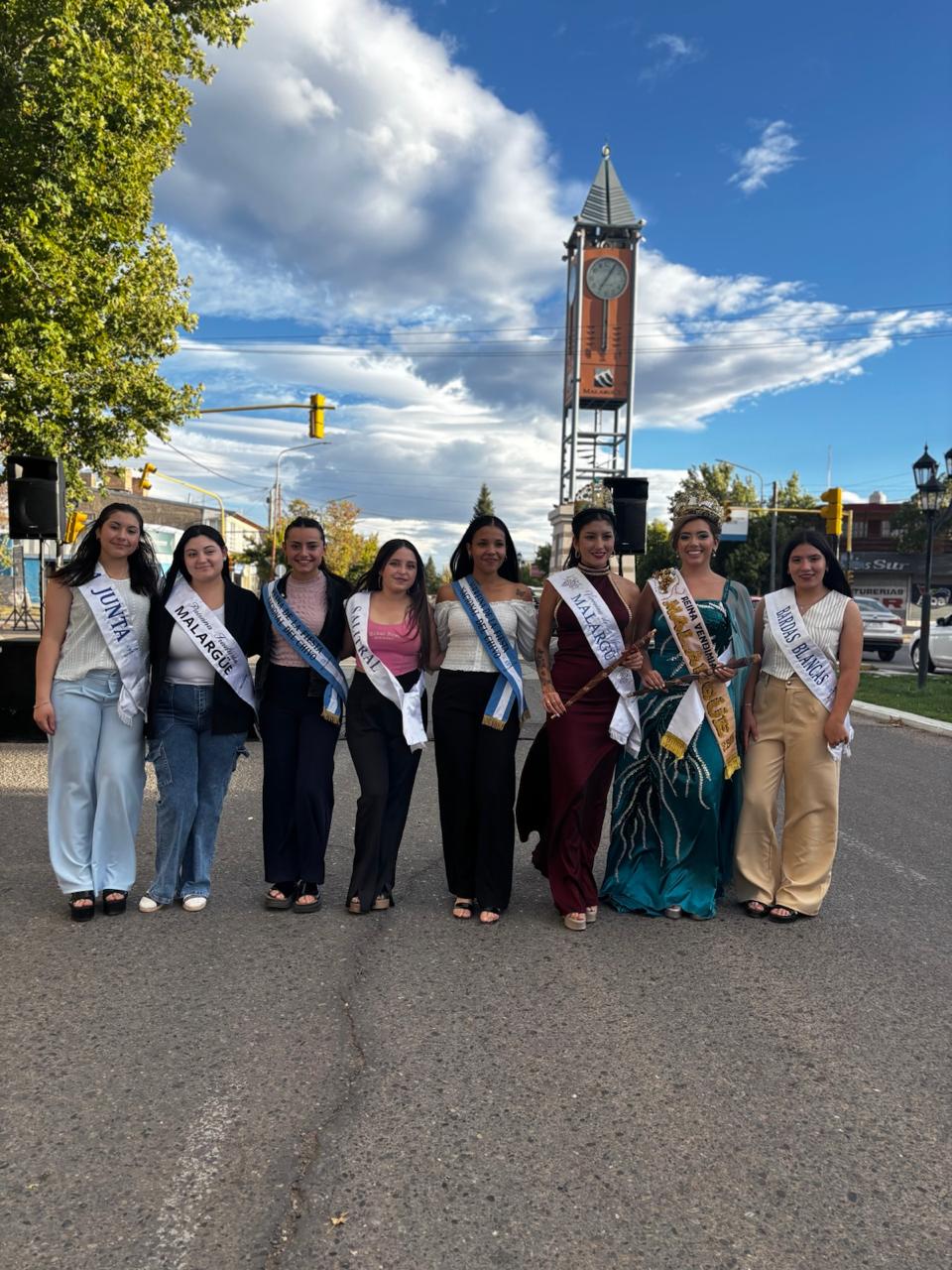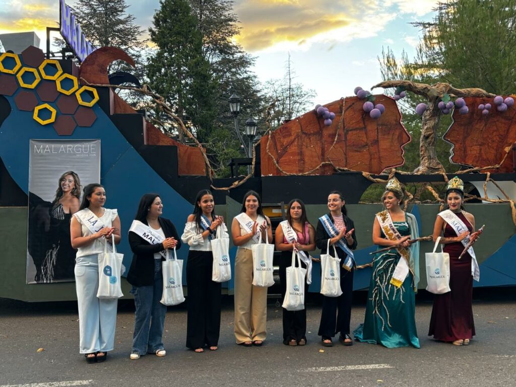 Durante la actividad, la reina también estuvo acompañada por las demás soberanas que representan a los distintos sectores de Malargüe, quienes formaron parte de este especial recibimiento y compartieron junto al público la celebración.
