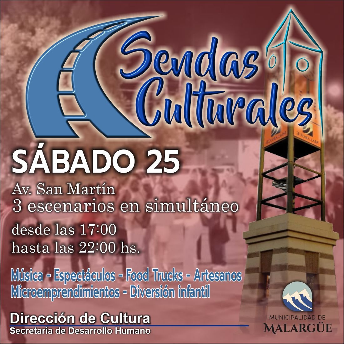 Este sábado 25, la Avenida San Martín será escenario de Sendas Culturales, un evento que promete música, espectáculos y actividades para toda la familia. La jornada, organizada por la Dirección de Cultura de la Municipalidad de Malargüe, se desarrollará de 17:00 a 22:00 horas.