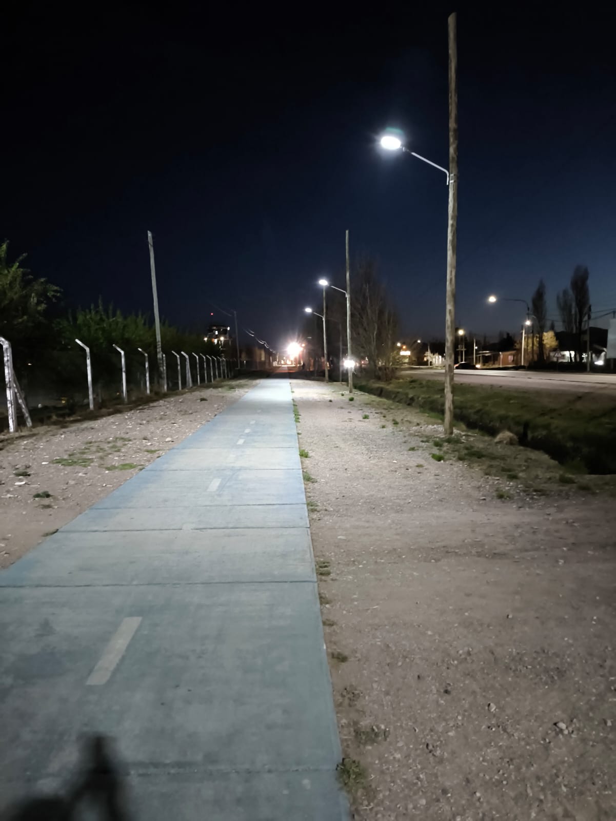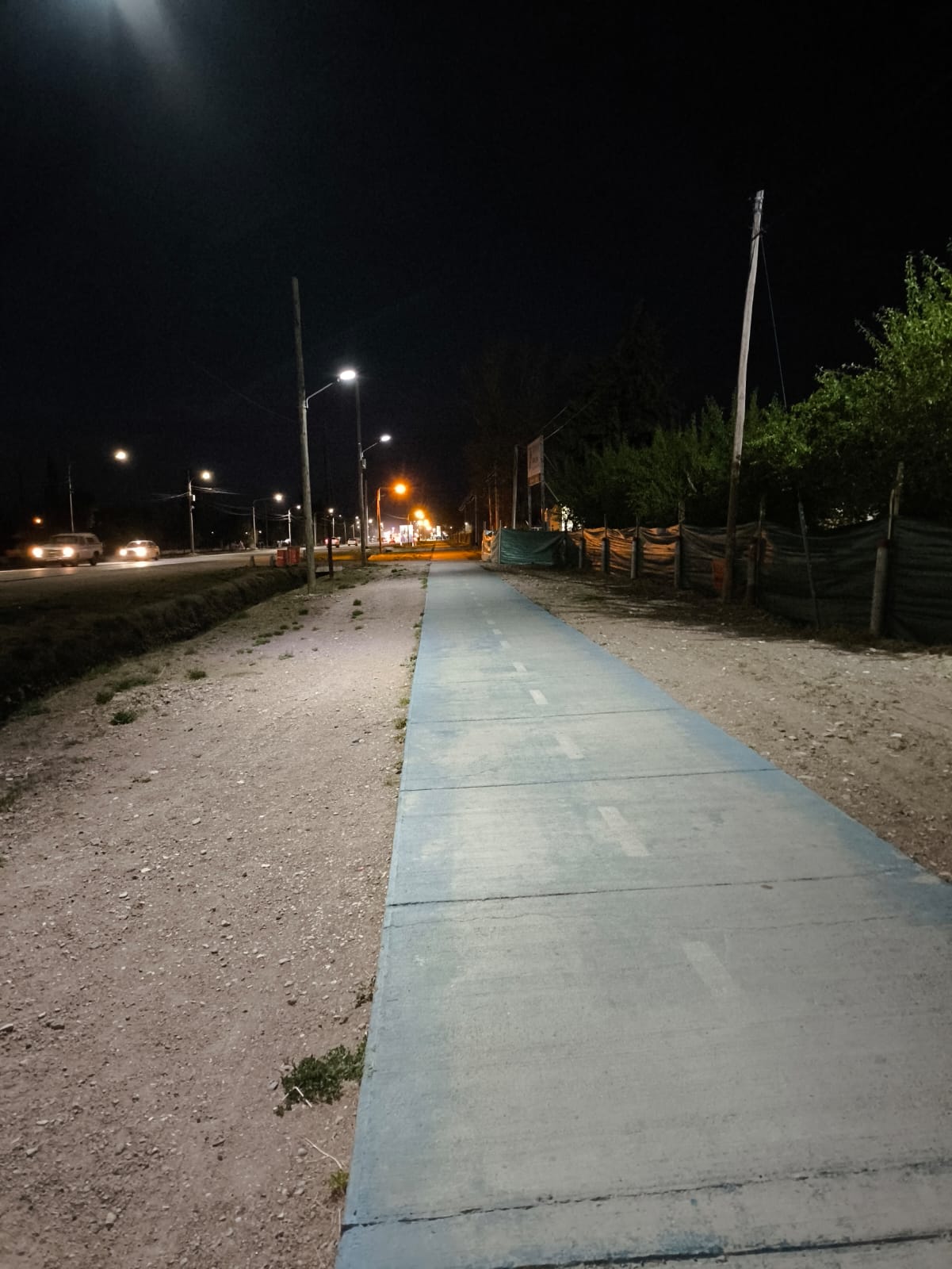 Otro de los proyectos destacados por el Director de Obras Públicas es la instalación de luminarias en la ciclovía de la Ruta 40. Este sistema de iluminación combina tecnología LED y energía solar, lo que permite reducir el consumo eléctrico y garantizar una iluminación eficiente a lo largo de todo el recorrido, desde el aeropuerto hasta el cementerio. Además, las luces cuentan con un sistema inteligente que regula la intensidad según el paso de peatones, aumentando la seguridad y visibilidad durante la noche.