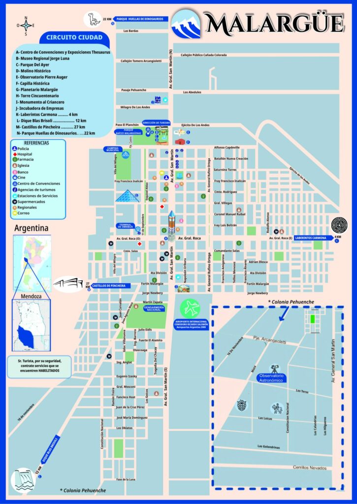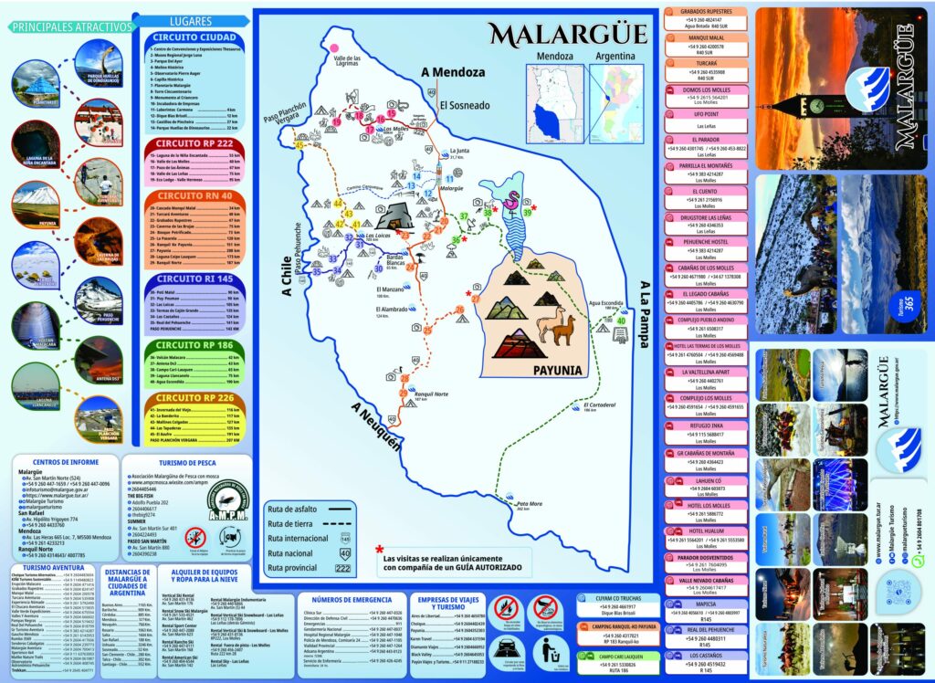 Ubicada en el sur de la provincia de Mendoza, la ciudad de Malargüe es uno de los destinos turísticos más completos de la Argentina. La Dirección de Turismo pone a disposición información accesible, folletería actualizada y propuestas para todo el año, con una propuesta que combina naturaleza, aventura, ciencia y cultura, el departamento ofrece múltiples circuitos y actividades para disfrutar durante todo el año, posicionándose como una opción ideal tanto para escapadas como para viajes prolongados.