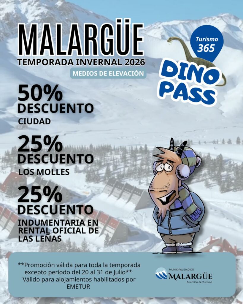 Además, los residentes malargüinos contarán con un beneficio especial: un 50% de descuento con un cupo total de mil pases para toda la temporada, con un máximo de tres por persona. El acuerdo establece una restricción entre el 20 y el 31 de julio, período en el que no estará vigente el beneficio.