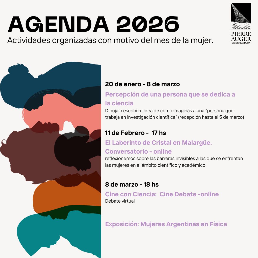 La Secretaría de Desarrollo Económico y el Observatorio Pierre Auger invita a la comunidad a participar en una serie de actividades organizadas para conmemorar el Mes de la Mujer en marzo. Con un enfoque en la visibilización del rol de las mujeres en la ciencia, las propuestas incluyen conversatorios, exposiciones y debates que buscan reflexionar sobre las barreras y avances de las mujeres científicas.