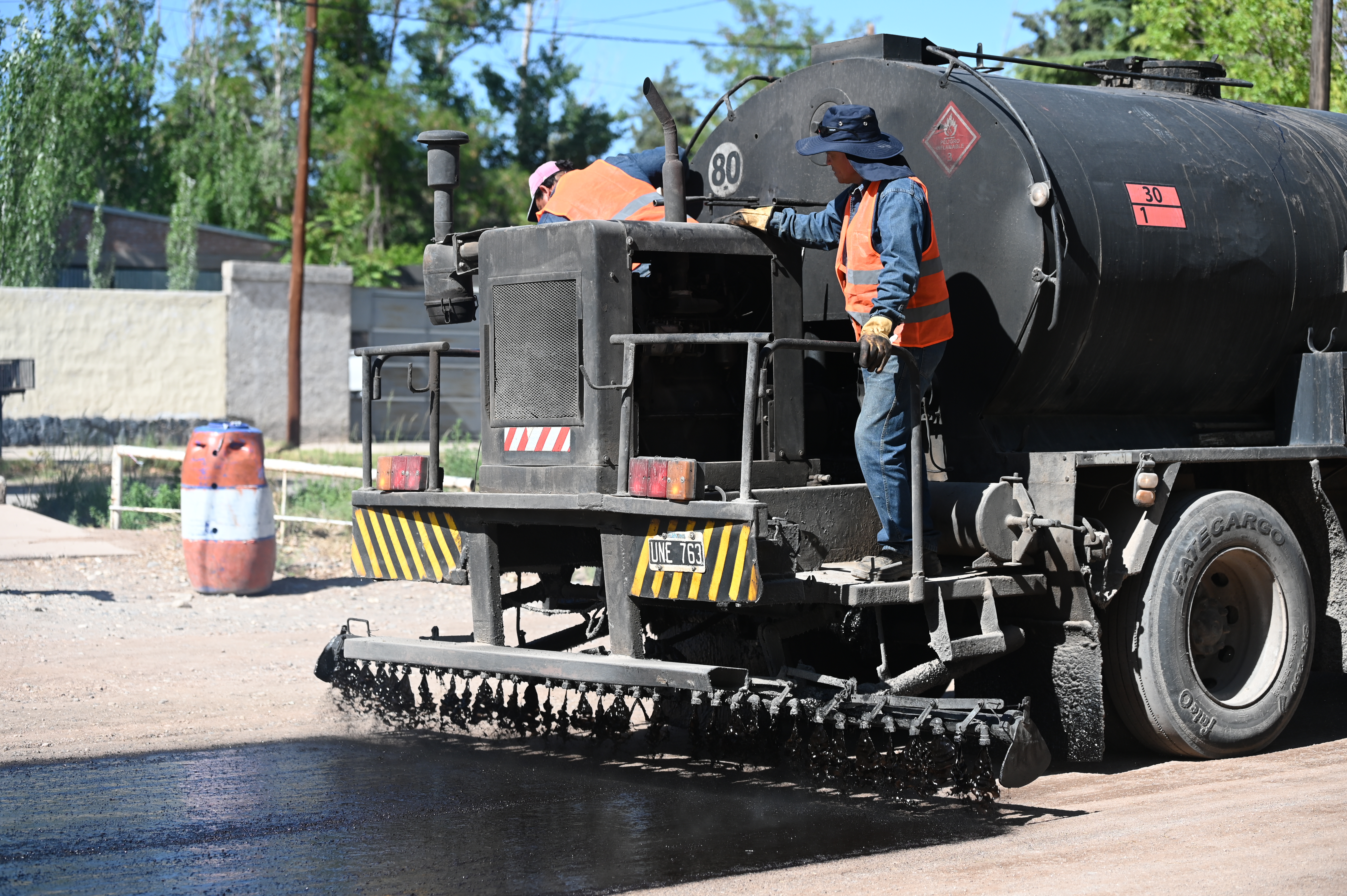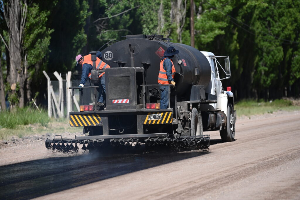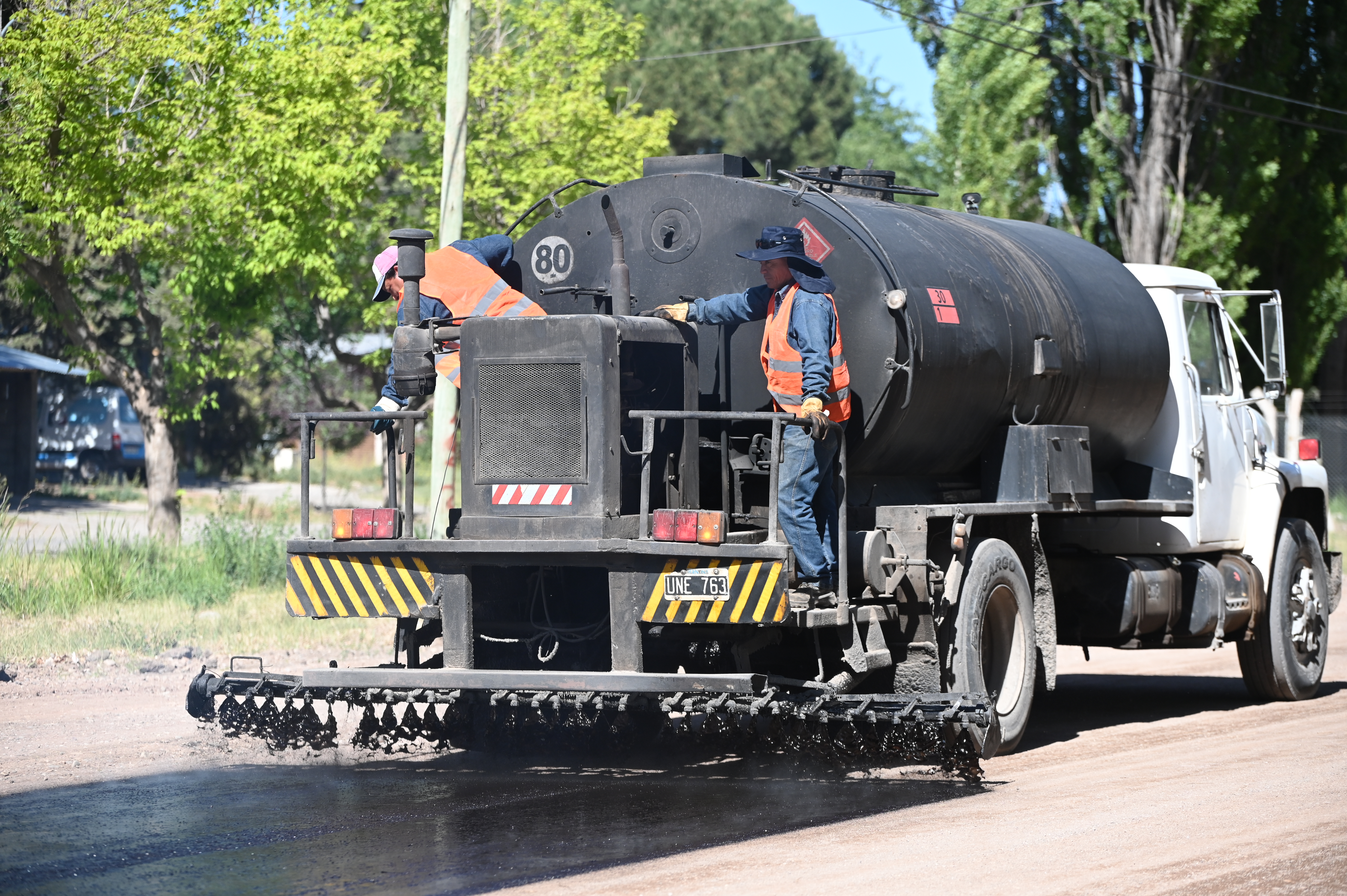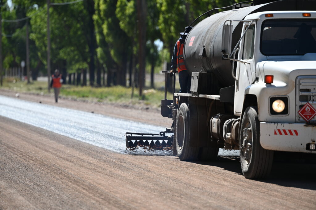 Una de las obras más importantes y que se encuentra en su etapa final es la imprimación asfáltica de calle Jorge Newbery, una arteria clave para el tránsito pesado y las empresas de servicios. Ojeda explicó que la obra fue licitada en abril de este año y comenzó con el levantamiento de la carpeta deteriorada, la preparación de la base estabilizada y los controles de densidad y compactación realizados por el laboratorio de suelo municipal.