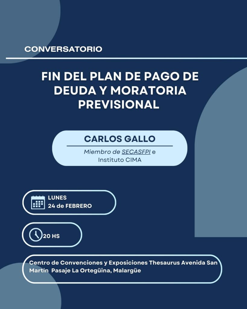 El pasado 24 de febrero de 2025, se llevó a cabo un importante conversatorio en el Centro de Convenciones y Exposiciones Thesaurus, organizado por Carlos Gallo y Juan Cruz Ferranova, miembros de SECASFPI e Instituto CIMA. En esta jornada, los presentes tuvieron la oportunidad de esclarecer dudas sobre el vencimiento de la moratoria previsional y el plan de pago de la deuda previsional, un tema importante para los trabajadores argentinos. El vencimiento de la moratoria previsional El 23 de marzo de 2025 marca el fin de la moratoria previsional, una ley aprobada a finales de 2022 que ha sido vigente hasta marzo de 2023. Esta ley otorgaba un plazo de dos años para regularizar deudas previsionales, con la posibilidad de una prórroga por otros dos años. Sin embargo, el Gobierno Nacional ha decidido no prorrogarla, por lo que esta será la última oportunidad para acceder a los beneficios establecidos. Este programa ofrece una posibilidad única para muchos trabajadores de regularizar su situación previsional antes de alcanzar la edad jubilatoria. Durante el conversatorio, se destacó que la ley permite a los trabajadores en actividad mayores de 50 años realizar pagos adicionales para alcanzar los 30 años de aportes, lo que les permitirá jubilarse sin deudas. En particular, las mujeres pueden jubilarse a los 60 años y los hombres a los 65, con la posibilidad de cancelar anticipadamente la deuda previsional. Cómo acceder al plan de pago: El trámite para acceder a la moratoria previsional es sencillo, aunque requiere de algunos pasos: Solicitar un turno en una oficina de ANSES. Elegir los períodos adeudados a cancelar. Generar un VEP (Volante Electrónico de Pago) para realizar el pago. Realizar el seguimiento del trámite a través de la plataforma “Mi ANSES” o acudiendo a las oficinas correspondientes. La urgencia del vencimiento: ¿Qué ocurre después del 23 de marzo? Este es el aspecto más urgente de la moratoria. Quienes tengan la edad jubilatoria (mujeres a partir de los 60 años y hombres desde los 65 años) podrán solicitar su jubilación con moratoria si lo hacen antes del 23 de marzo de 2025. A partir de esa fecha, la ley perderá su vigencia, lo que significa que aquellas personas que no hayan alcanzado los 30 años de aportes no podrán acceder a la jubilación. En lugar de la jubilación, aquellos que no hayan cumplido con los requisitos deberán optar por la Pensión Universal para el Adulto Mayor (PUAM), un beneficio con numerosas desventajas. Entre ellas, se destaca que la PUAM solo otorga el 80% de la jubilación mínima, sin importar sin son 1 o 29 la cantidad de años aportados. Además, a diferencia de la jubilación, la PUAM no se puede transferir como pensión derivada a la esposa o esposo en caso de fallecimiento. El futuro de las moratorias previsionales Desde el Gobierno Nacional se ha confirmado que la moratoria no será prorrogada. Esta es la última oportunidad para esas personas que no han alcanzado los 30 años de aportes. Ante este panorama, se hace un llamado urgente a todos los que cumplen con los requisitos para acceder a la moratoria previsional para antes del 23 de marzo. Recomendaciones finales Para resolver cualquier duda, se recomienda solicitar un turno en ANSES o acercarse a las oficinas del organismo. Los trabajadores estarán disponibles para brindar asesoramiento. Este es un momento crítico para quienes aún no han regularizado su situación previsional, por lo que es fundamental aprovechar esta última oportunidad antes del vencimiento de la ley. Este es el momento clave para regularizar la deuda previsional y asegurar el acceso a la jubilación. Las autoridades insisten en la importancia de actuar rápidamente, ya que después del 23 de marzo, la ley dejará de estar vigente y las posibilidades de acceder a una jubilación completa quedarán limitadas.