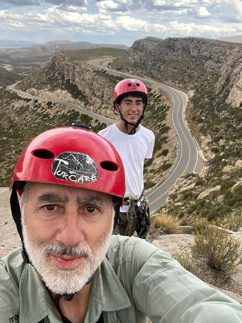 Además de pasar un día en el camping de los Castillos de Pincheira (que tiene pileta, glamping, restaurante con exquisito menú de chivito, y un puente colgante que lleva a una tremenda cueva horadada en la piedra al pie de la formación que le da nombre al lugar), y otra jornada en el camping Termas de Cajón Grande (siete piletas de agua a unos 40 ºC, bar, un espacio verde de postal y un paisaje que evoca la publicidad del chocolate de la vaca violeta), cerramos nuestra visita en el parque de aventuras Turcará, sobre la Ruta Nacional 40, a 37 km de Malargüe, un complejo donde, si nos faltaba adrenalina, ahí la vamos a generar toda junta, porque hay puentes tibetanos, dos tirolesas muy altas, puentes comando sobre el precipicio y una hermosa vía ferrata al filo del vacío, además de restaurante, venta de artesanías, siete parcelas individuales de camping, y un circuito autoguiado de trekking paleontológico (fósiles de diferentes eras con sus respectivas explicaciones) que se puede realizar en un par de horas.