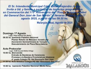 Malargüe honra la memoria del General San Martín en el 175° aniversario de su paso a la inmortalidad Leer nota completa 13 agosto, 2025