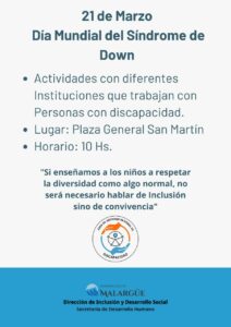 Malargüe se une a la celebración del Día Mundial del Síndrome de Down Leer nota completa 21 marzo, 2025