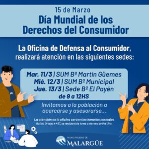 En el Día Mundial de los Derechos del Consumidor la Oficina de Defensa al Consumidor te invita a conocer más y asesorarte Leer nota completa 10 marzo, 2025