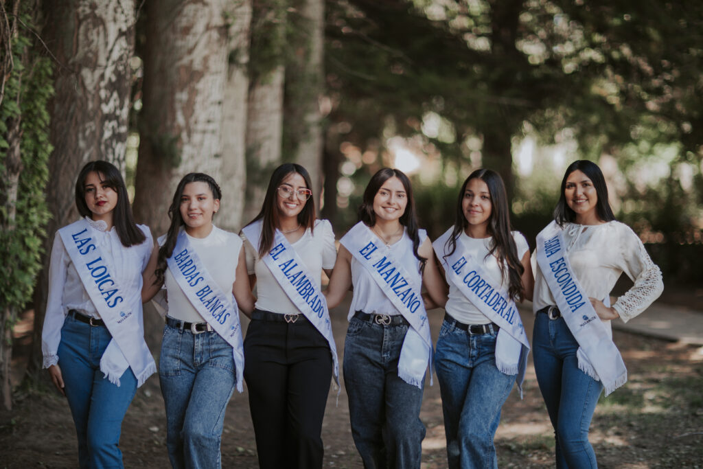 Las candidatas de esta edición son Tamara Abigail Guajardo, representante de Las Loicas; Vanina Jaque, de Bardas Blancas; Eva Villarruel, por La Junta; Tania Nazarena Escobar Cortez, de El Alambrado; Yasmina González, de El Manzano; Victoria Carrasco, de Cortaderal; Trinidad Cortez, de Salitral; y Sasha Katherina Nicol Lamas Cuitiño, representante de Agua Escondida. Cada una de ellas llega a esta instancia con el orgullo de portar los colores y las tradiciones de su comunidad.