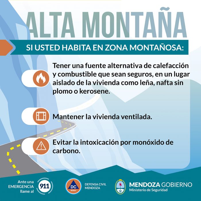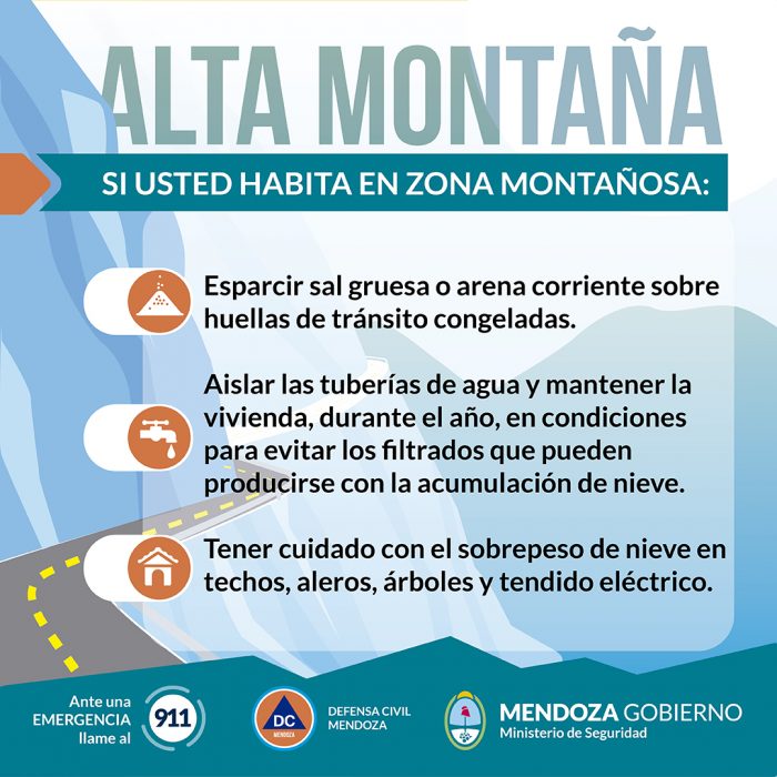 En cuanto a las personas que habitan en Alta Montaña o puesteros, se aconseja abastecerse de suficiente leña y combustible para el encendido de equipos y hacer acopio de agua potable.