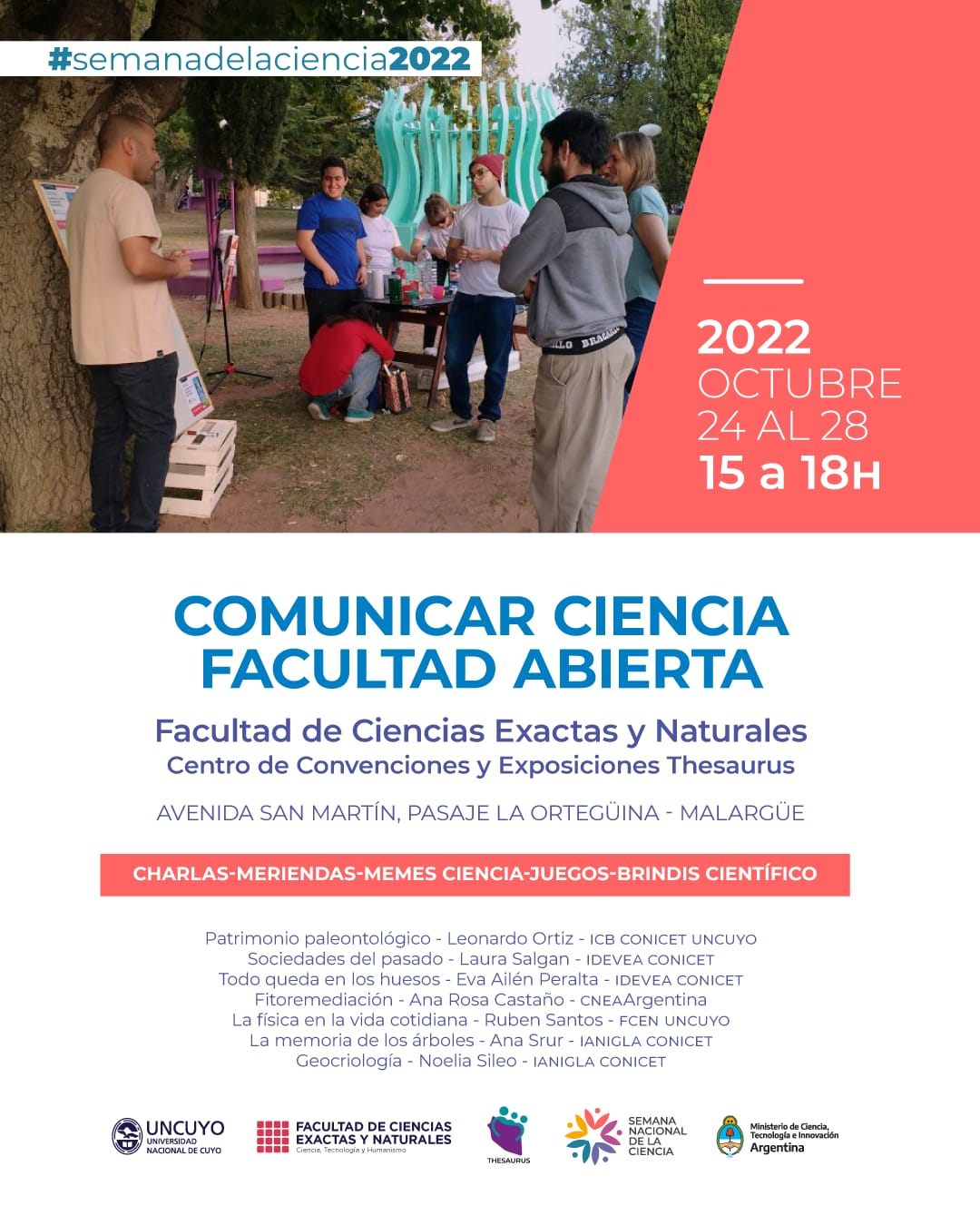 El ciclo de charlas Comunicar Ciencia se propone abrir la Facultad de Ciencias Exactas y Naturales (FCEN) y divulgar ciencia durante la última semana de octubre. En un primer momento desarrollará diversas actividades interactivas que giran en torno a las Ciencias Exactas y Naturales y luego un investigador compartirá sus trabajos a fin de acercar, comunicar e interactuar sobre diversos temas de estudio.