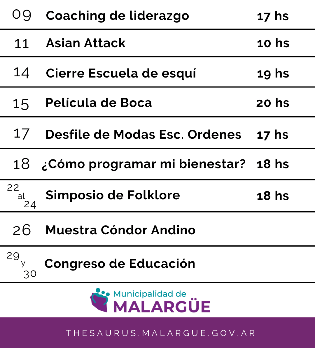 Cada mes, el Centro de Convenciones y Exposiciones Thesaurus tiene una agenda cultural para compartir con la gente, la que a continuación se detalla: