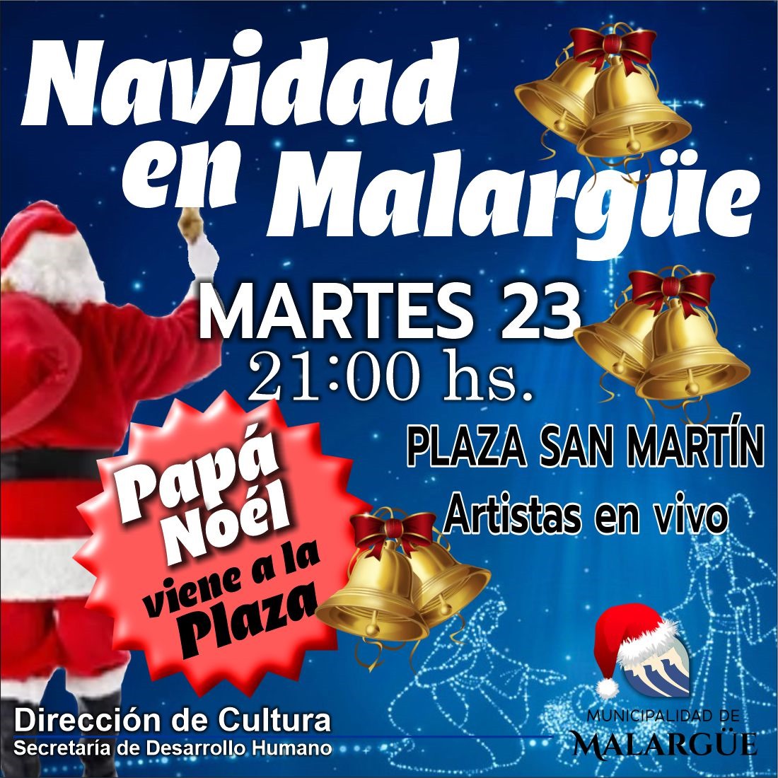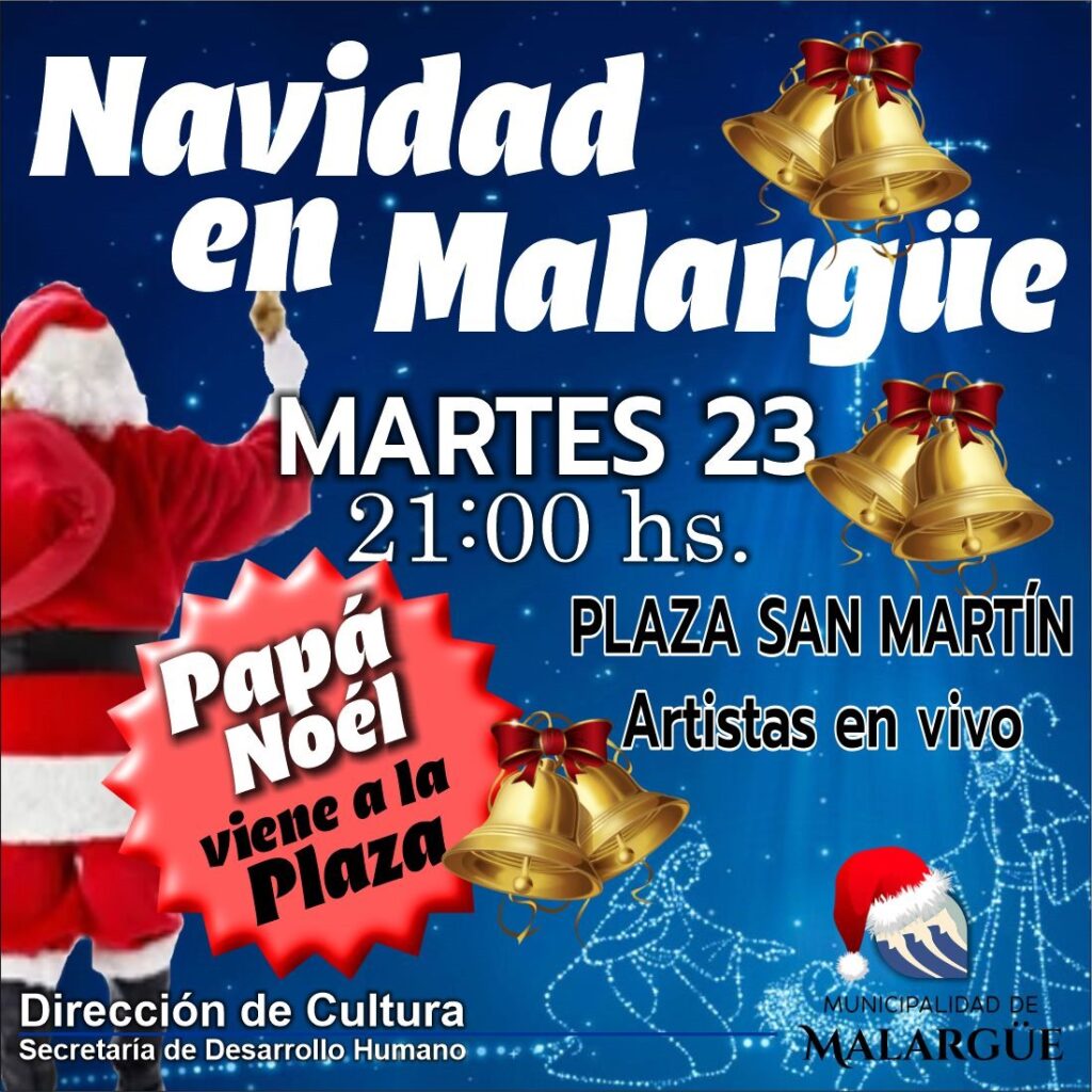 La Navidad está a la vuelta de la esquina, y con ella llega una oportunidad única para todos los niños de Malargüe. Este martes 23 de diciembre, a las 21:00 horas, la Plaza San Martín se convertirá en un lugar lleno de magia, risas y esperanza. Papá Noel volverá para recibir las cartas de aquellos niños que aún no han podido hacer llegar sus deseos al hombre más querido de la Navidad.