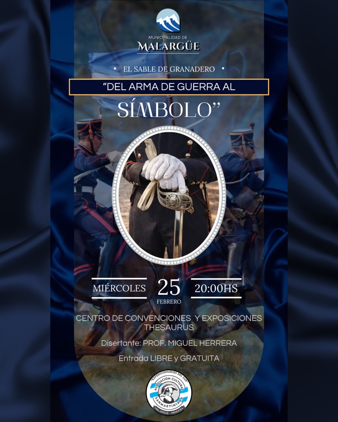 La Municipalidad de Malargüe invita a una charla abierta sobre el significado histórico y simbólico del Sable de Granadero, emblema de la gesta sanmartiniana.