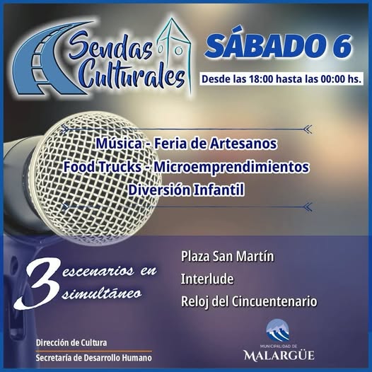 Este sábado 6, la ciudad se llena de vida con una nueva edición de Sendas Culturales, una propuesta imperdible para disfrutar desde las 18:00 hasta la medianoche. Tres escenarios, feria de artesanos, food trucks, actividades infantiles y mucho más te esperan.
